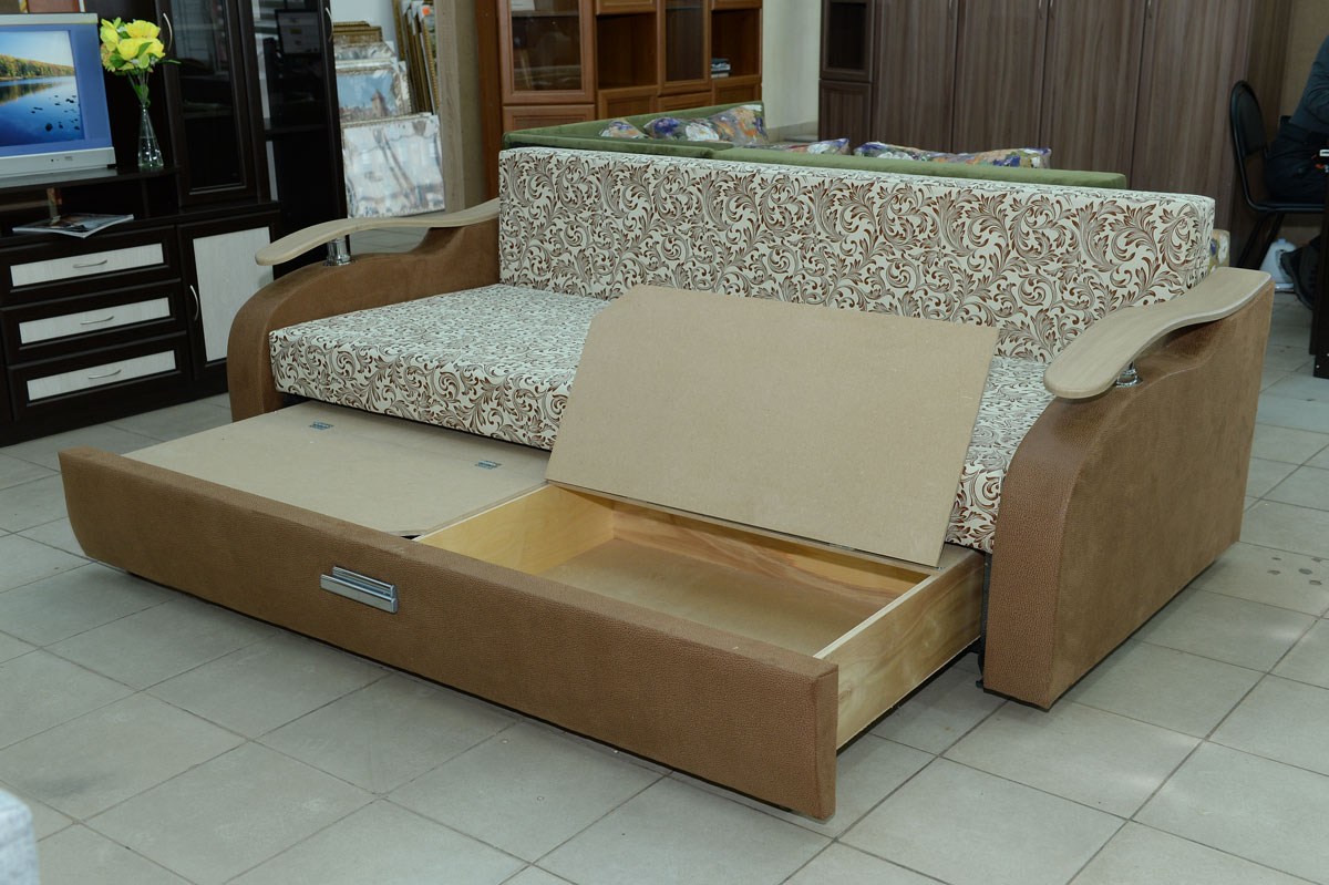 - 2 - - В салонах определитесь с вариантами обивки(В салонах присутствуют образцы тканей) и механизмом раскладывания