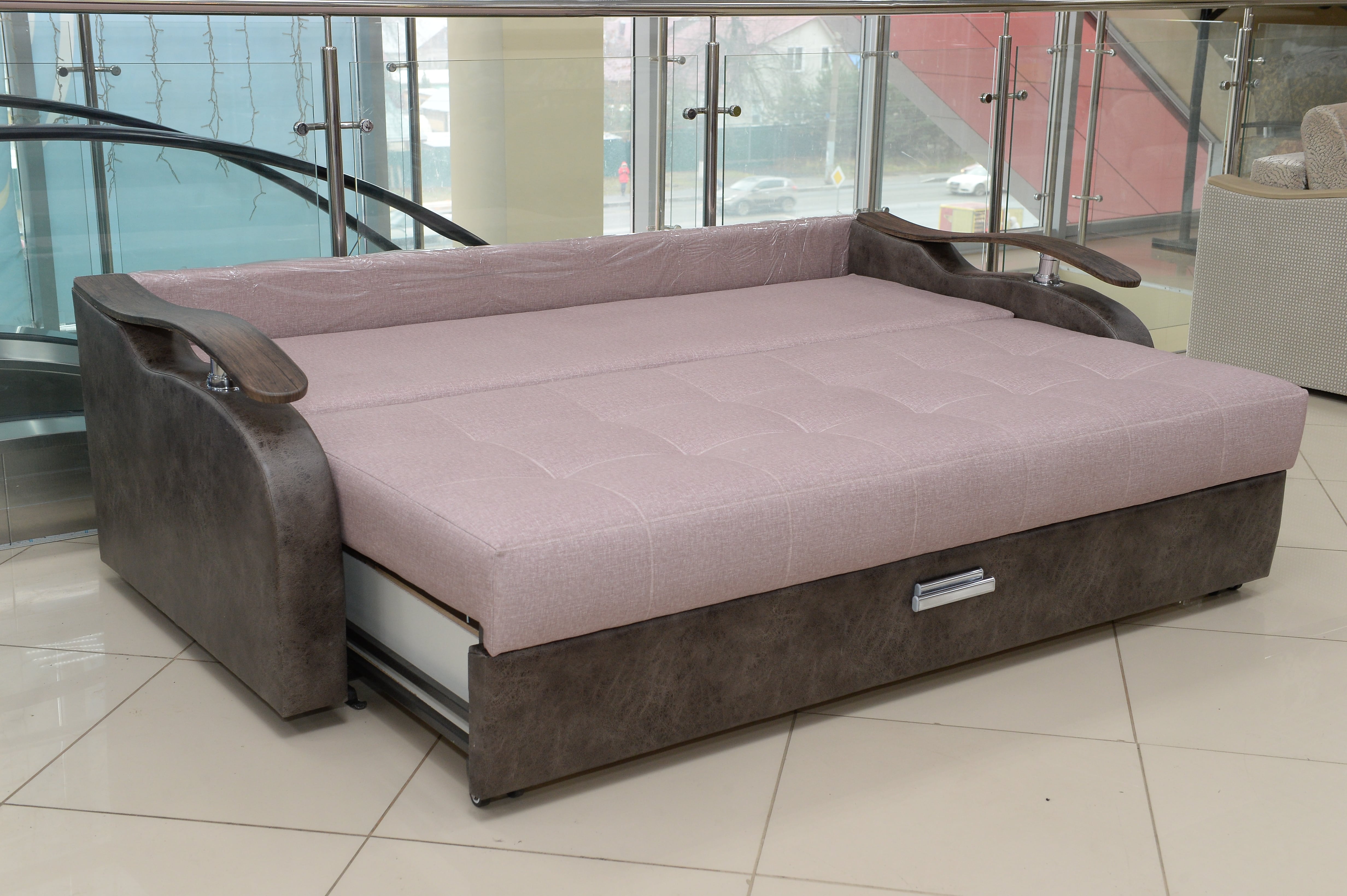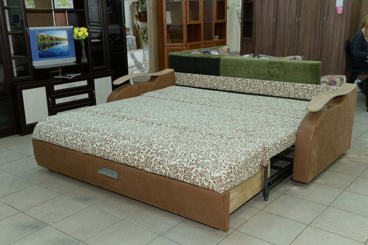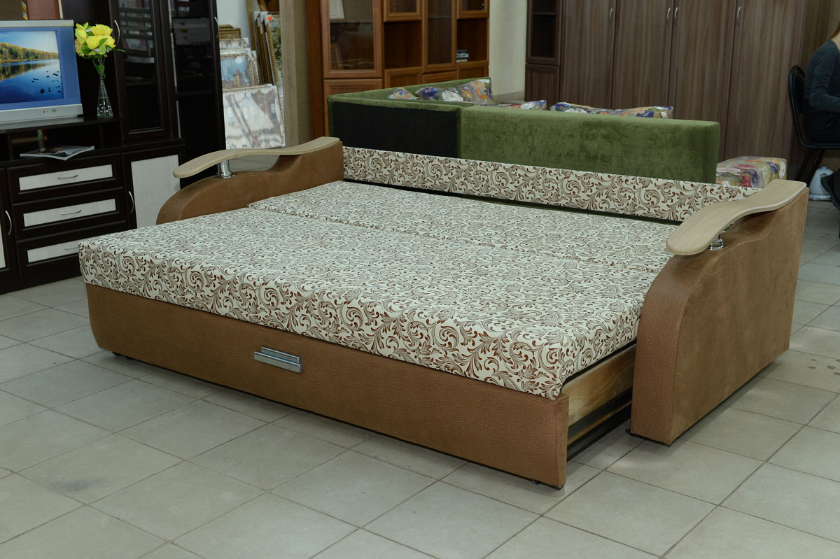 - В разложенном виде модель образует два ровных, цельных спальных места.