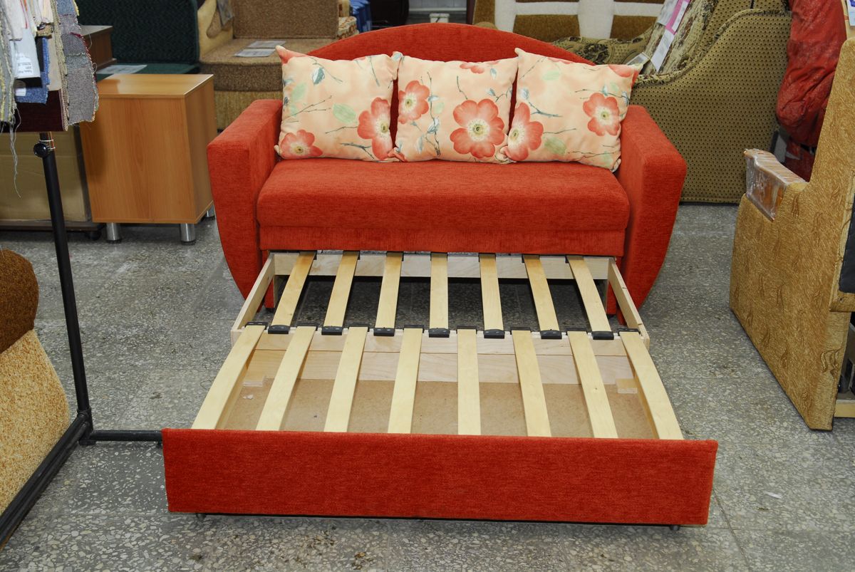- 2 - - В салонах определитесь с вариантами обивки(В салонах присутствуют образцы тканей) и механизмом раскладывания