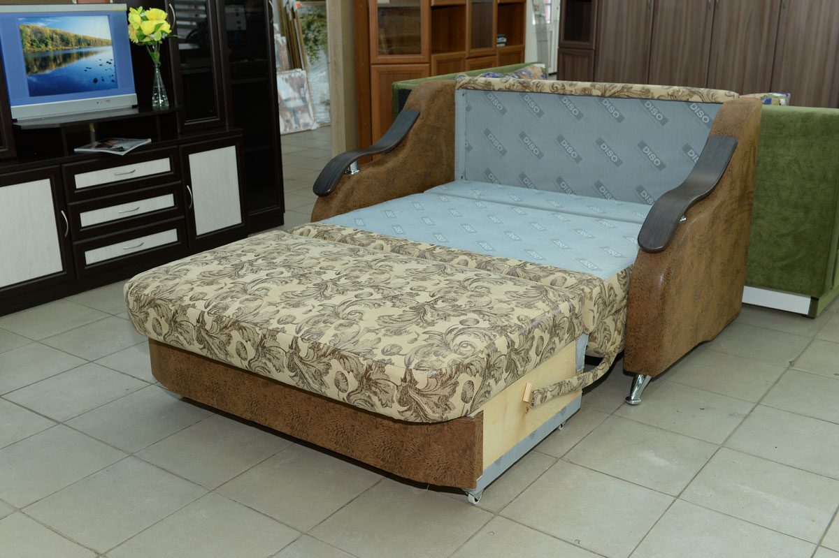 - В разложенном виде модель образует два ровных, цельных спальных места.