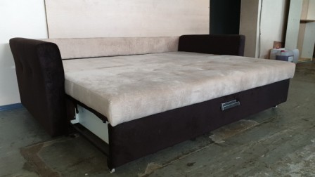 В разложенном виде модель образует два ровных, цельных спальных места.